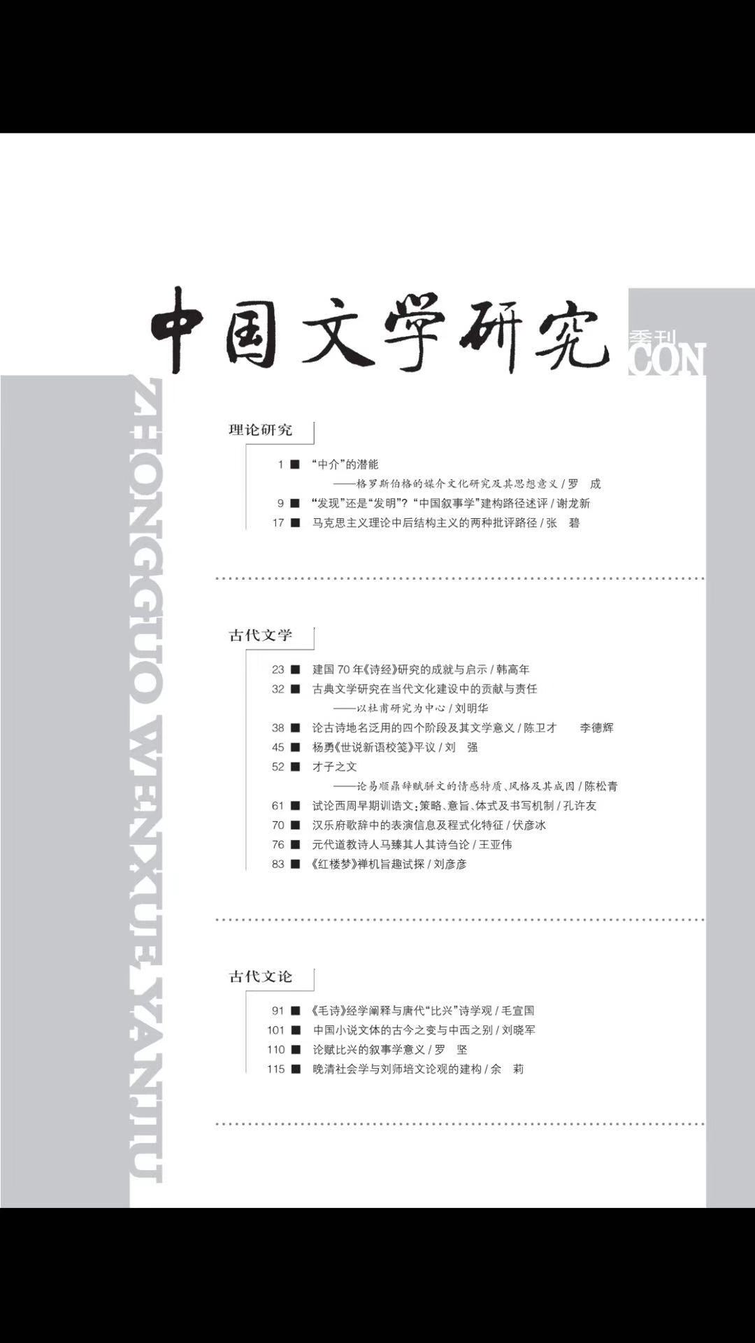 《中国文学研究》2019-3目录
