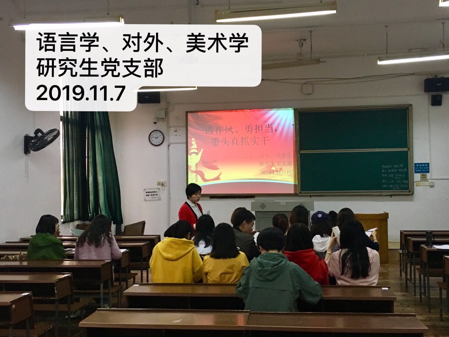 2019年11月7日,学院各党支部分别以主题党日、组织生活、参观学习等形式举行“不忘初心、牢记使命”主题教育第三次学习研讨。围绕“改作风、勇担当,带头真抓实干”专题,党员师生展开研讨,纷纷表示要对照党的要求,反思自身的言行,端正工作和学习态度,培养求真务实的作风,在工作和学习中取得更大成绩,为学院的建设和发展作出更大贡献。