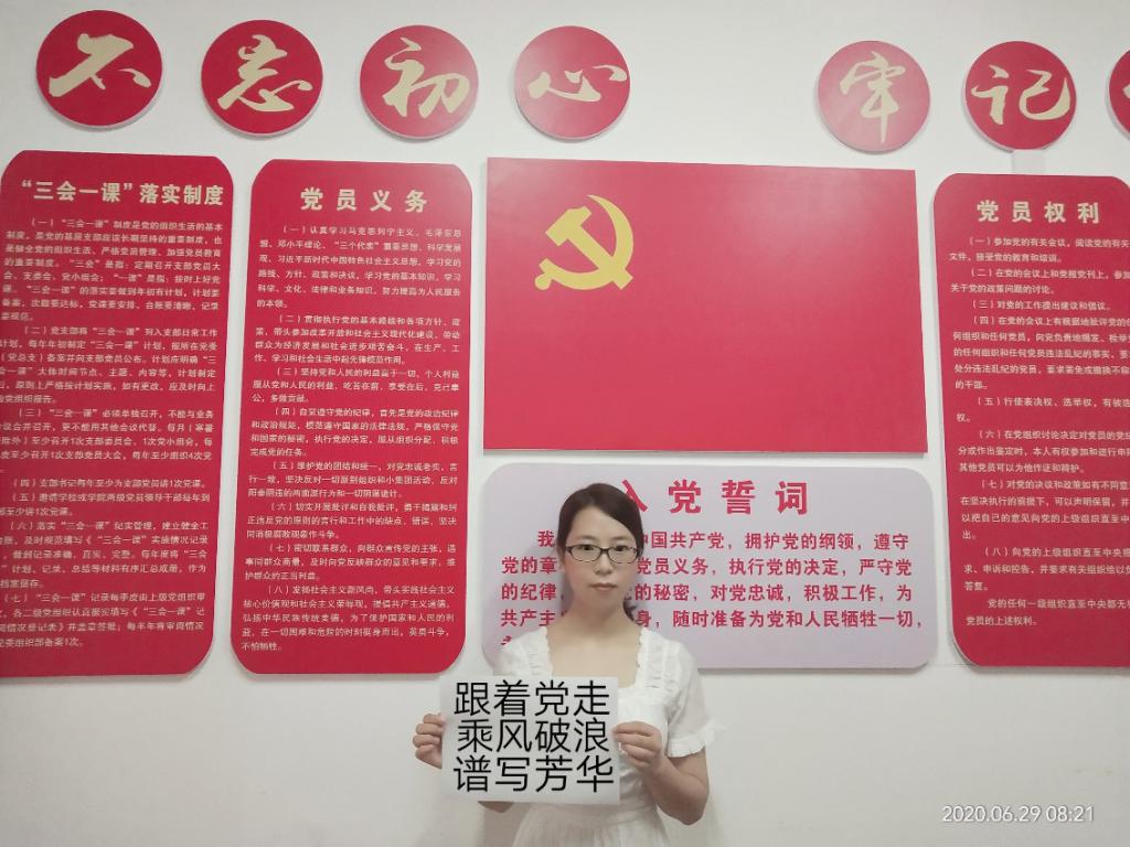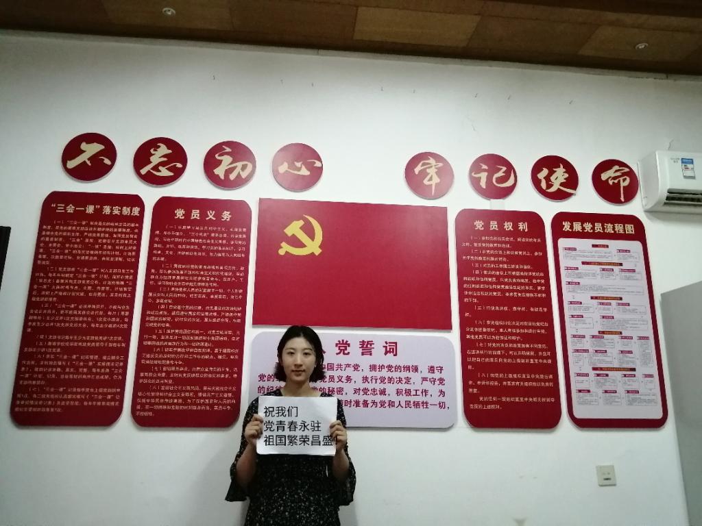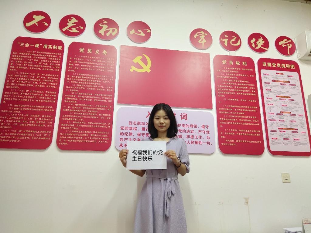 祝党生日快乐!我和党旗合个影,不忘初心,坚守使命。在这次防疫工作中,我们看到了中国共产党员的担当与责任,看到了在党的领导下人民的伟大凝聚力。作为研究生党员,一个党员就是一面旗帜,我们更要践行好入党初心,承担起社会责任,发挥好自己的作用,做一个对社会、对国家、对党有用的人!