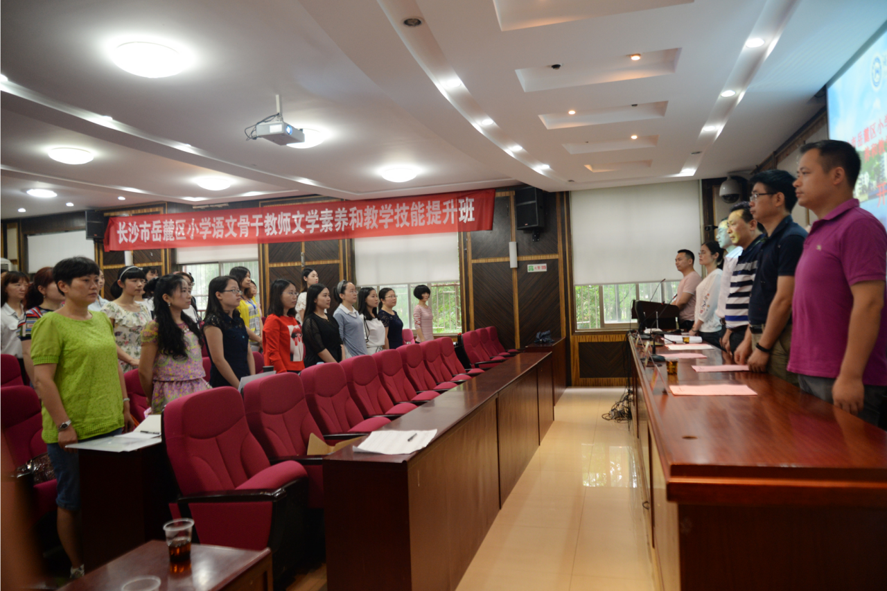 (通讯员:栗焓)5月21日上午,长沙市岳麓区小学语文骨干教师文学素养和教学技能提升班在英国上市官网365216教室开班。岳麓区教师进修学校党委书记谢福胜,岳麓区小学语文教研员熊社昕,英国上市官网365副院长彭万福,教学班主任周敏副教授,成教办主任张德强出席典礼,本次典礼由培训班管理班主任廖加丰主持。