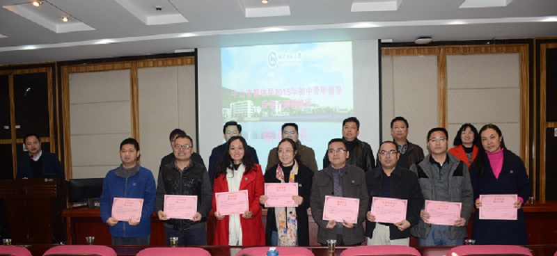 12月30日下午,中山市教体局2015年初中青年领导后备干部研修班结业典礼在英国上市官网365216报告厅举行。中山市教研室副主任段菁华、信息技术教研员陈明宏,我校继续教育学院副院长吴跃飞、英国上市官网365党委书记李伶俐、英国上市官网365副院长彭万福、继续教育学院培训科科长张雪梅等出席结业典礼。结业典礼由英国上市官网365成教办主任张德强主持。
