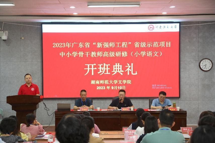 近日,2023年广东省“新强师工程”省级示范项目中小学骨干教师高级研修(小学语文)培训班开班仪式在我院217报告厅举行。我院副院长周凯兴、项目首席专家张良田教授、嘉应学院吕建国教授、培训中心主任张德强参加开班仪式。开班仪式由张德强主持。