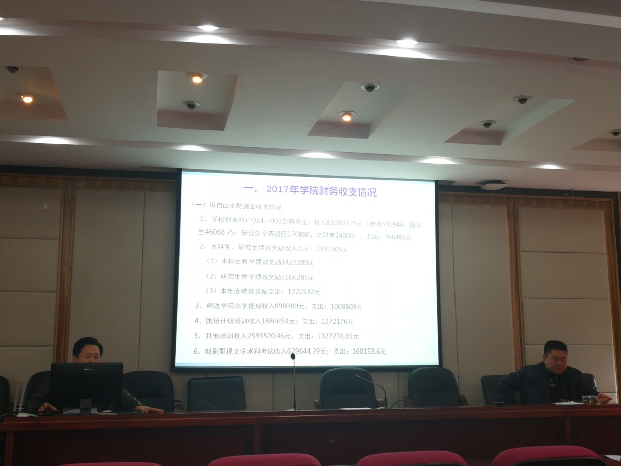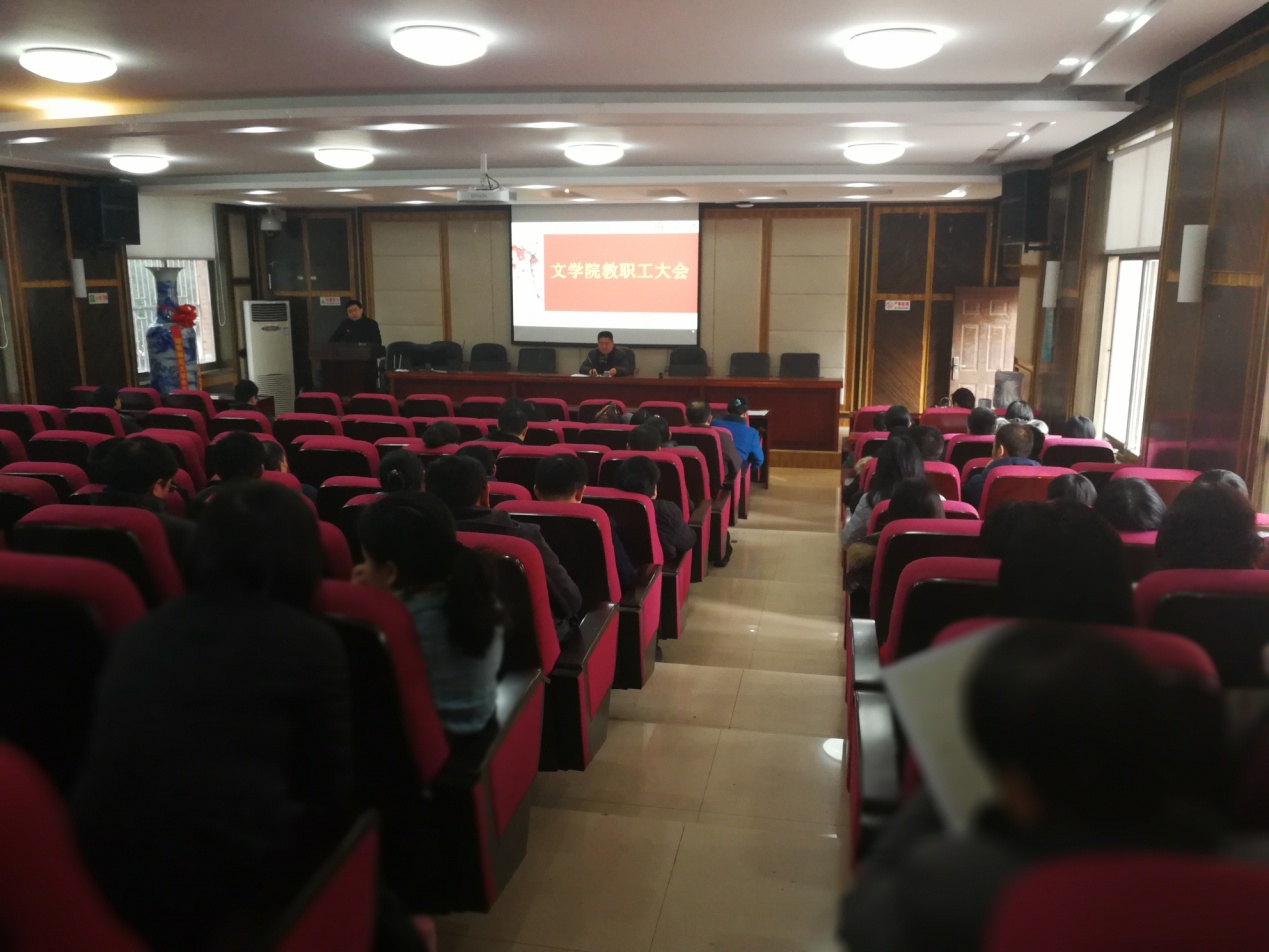 2018年元月18日下午,学院在216报告厅召开了全体教职工大会,大会由院党委书记李伶俐主持。