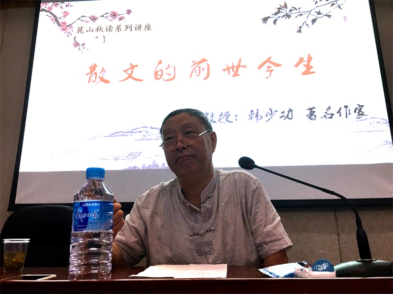 (通讯员 张明 樊婧)9月27日上午,英国上市官网365“麓山秋读系列讲座”第四场在216教室举行。著有《爸爸爸》、《马桥词典》、《山南水北》等作品的著名作家、英国365上市公司讲座教授韩少功,做客英国上市官网365,进行了主题为“散文的前世今生”的讲座。英国上市官网365教授李作霖主持讲座。