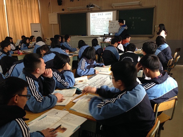 覃星雅在高1505班讲授《故都的秋》。清雅的音乐声中,覃老师用一段动情的朗诵带领大家进入了秋的清、静、悲凉之中。从“明秋图”到“赏秋景、品秋味”,再到“探秋情”,学生们非常主动,分组进行思考和讨论,竞相上台展示讨论成果。在“探秋情”环节,学生有不同的观点,有的小组主张郁达夫主要是“颂秋”,有的小组则认为主要是“悲秋”,覃星雅引导学生从课文中找依据,品读句子、体会感情,同时结合作者的经历性情等相关资料综合思考,让学生自己品尝这曲“对故都之秋的悲凉的颂歌”。