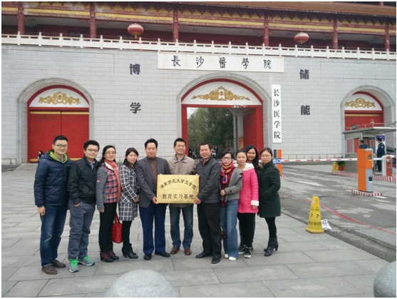 最后,我院领导与队员们就实习各方面的问题进行了交流,再次指出我们要多虚心向指导老师求教,不断取得进步。课后,学院领导一行与长沙医学院国际教育学院唐德根处长等领导、双方指导老师以及实习队员手捧英国上市官网365教育实习基地匾额在长沙医学院校门前合影留恋。
