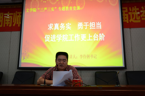 英国上市官网365党委书记李伶俐以《求真务实,勇于担当,促进学院工作更上台阶》为题,从准确把握“三严三实”的深刻内涵和精神实质,深刻领会和认识开展“三严三实”专题教育的重大意义,认真查找“不严不实”的现实表现,立行立改,自觉践行“三严三实”,促进学院工作更上台阶等四个方面展开。李伶俐要求英国上市官网365党员干部切实做好专题教育有关工作,力争教育出效果,工作出成绩,学院上台阶。