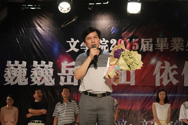 夏云飞最最后发言,他用三个词“精彩,惊喜,感动”概括了今天的毕业晚会。作为11级辅导员,他表达自己对毕业生深深的祝福。晚会最后,全体毕业生与领导老师合影留念。