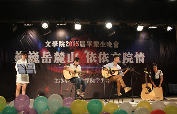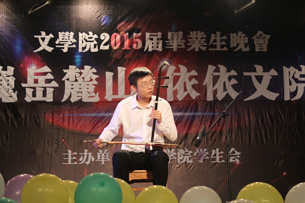吉他弹唱《无所谓超人》、《公路之歌》中包含原创因素,淡淡的吉他与歌声,配以口风琴和卡洪箱的伴奏,让整个舞台萦绕着纯净的校园气息。《神农架的梆鼓》在穿着民族服饰的同学们地表演下,歌声低沉与高空交织,使大家领略了不同民族的自然与朴素。二胡《三门峡畅想曲》时而明朗轻快,时而激昂飞扬。小品《偶像团》则将晚会氛围彻底点燃。故事讲述了3位风格迥异的待选男演员与一位美丽的女演员在试镜中表演的三段情景剧。出演者们极具表现力的演出成功打造了夸张幽默的舞台,为观众奉上最大的笑声,并与观众热烈互动。男生502寝室现场演唱《十年》,纪念他们即将逝去的美好时光。15届毕业生的年级学生会主席与闺蜜同台圆梦,演唱《一个像夏天一个像秋天》,送给在这个夏天所有舍不得说再见的朋友们,最后她们还表示:“虽然我们毕业了,但我们的友谊不会毕业。”