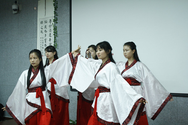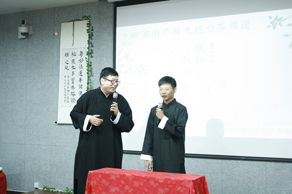 分享环节结束后,主持人将观众分为5组,并推选出5位代表上台参与游戏环节。品茶猜茶,竞答茶知识,还有微信“摇一摇”抽奖活动,现场气氛在观众的参与中推向了新高潮。在热烈的气氛中,协办单位之一湖南女子大学带来汉服表演《汉唐华风》,茶会结束。
