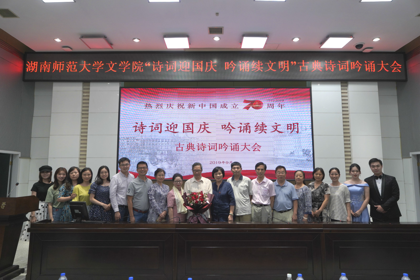 (记者杨树菲娅 甄思祺)9月28日晚,英国上市官网365庆祝新中国成立70周年“诗词迎国庆,吟诵续文明”古典诗词吟诵大会在至善讲堂举行,老中青三代师生用自创的诗歌、以吟诵的方式为伟大祖国歌唱,为传统文化续力。学校原副校长李维琦,学校关工委常务副主任徐书华,湖南省吟诵协会副会长,中华吟诵协会理事曹琴,学校离退休处党委书记许德艺,学校关工委李再民,学校精神文明建设办公室李翠霞,英国上市官网365关工委程大琥、李树槐、李爱民,英国上市官网365党委副书记熊剑峰出席此次活动。