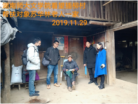 插柳村村长陪同我院四位老师看望结对扶贫对象苏华林,熊剑峰副书记代表学院赠送苏华林产业发展基金以及学院赵炎秋、易瑛、蒋志远等老师捐助的衣服、棉被等,苏华林老人显得很激动,不断感谢学院一直以来对他的关心和帮扶,向我们讲述这些年他和他爱人身体都不好,两人都因病连续住院,学院老师鼓励他树立脱贫信心,养好身体,今后的生活一定会越来越好。苏华林老人还特意感谢了学院李书记对他的关心。
