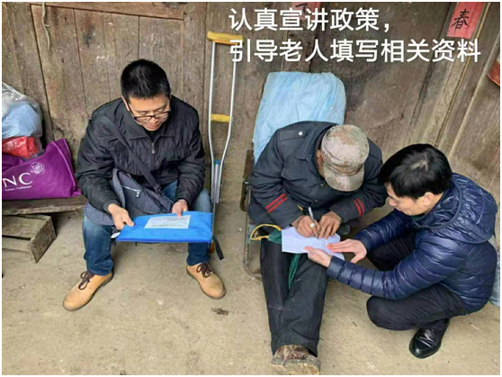 学院老师对照绥宁县精准扶贫贫困户入户资料(一户一袋)核实表,查看了苏华林老人的相关资料,填好后将资料整理汇总好交给师大扶贫工作组。