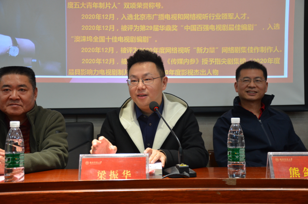 梁振华发言,他从同学们的作品中看到了源源不断的新意,看到了每个人对文学独特的理解。他强调,作为中文系的学生要提高自己的核心素养能力、要相信自己写作的道路。希望通过该奖点亮学生的文学梦想,由此发现、培养更多的文学新人,