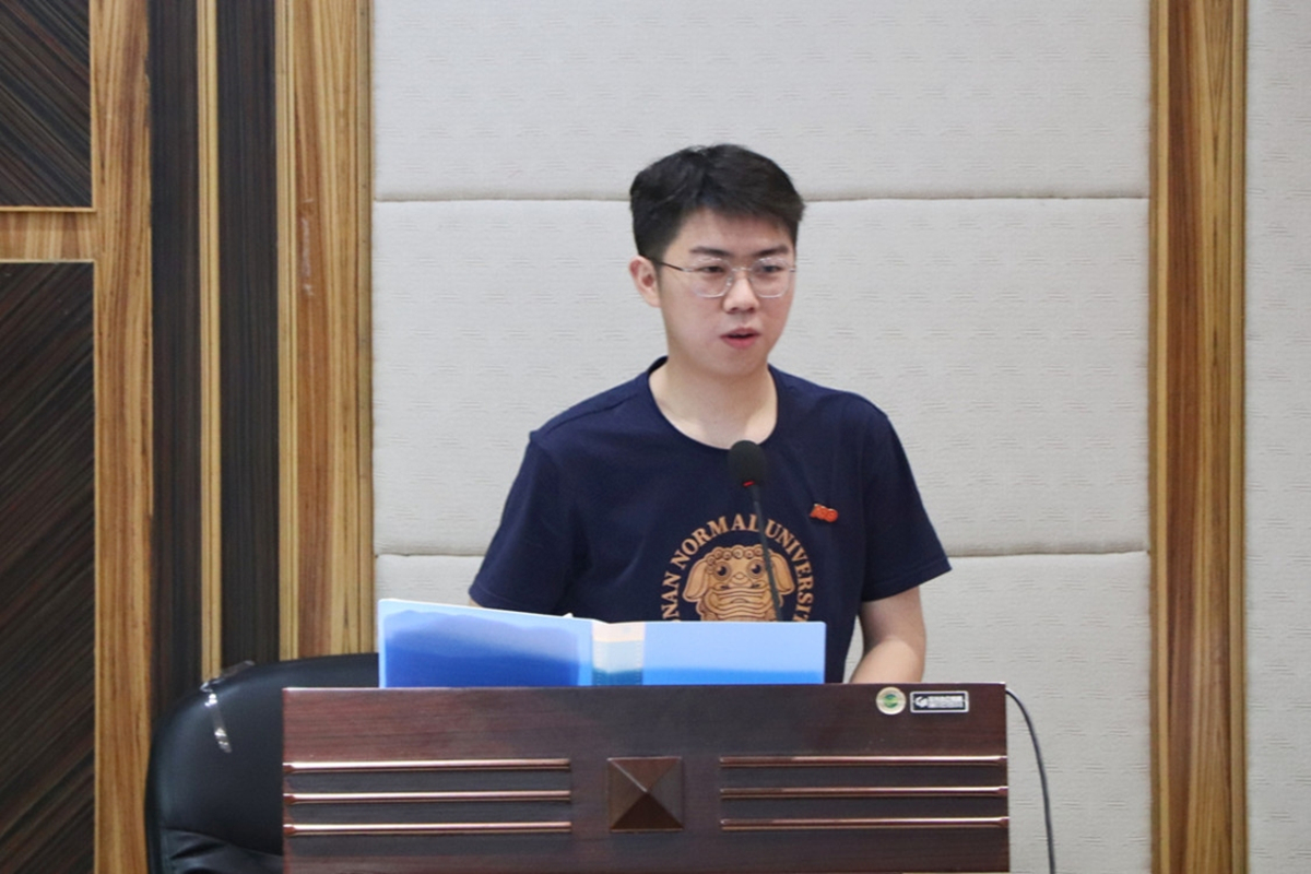 李丁以自己对未来职业的憧憬为引开始自己的宣讲。他讲述了自己初中物理老师一堂让他受益匪浅的课,并表示正是那位党员教师的治学严谨让他树立自己的目标——争做“四有”老师。李丁在最后强调“我将扎实自己的文化知识、锻炼师范技能、积累学生工作经验,向优秀党员教师学习严谨治学的精神并投入到教书育人的工作中去。”