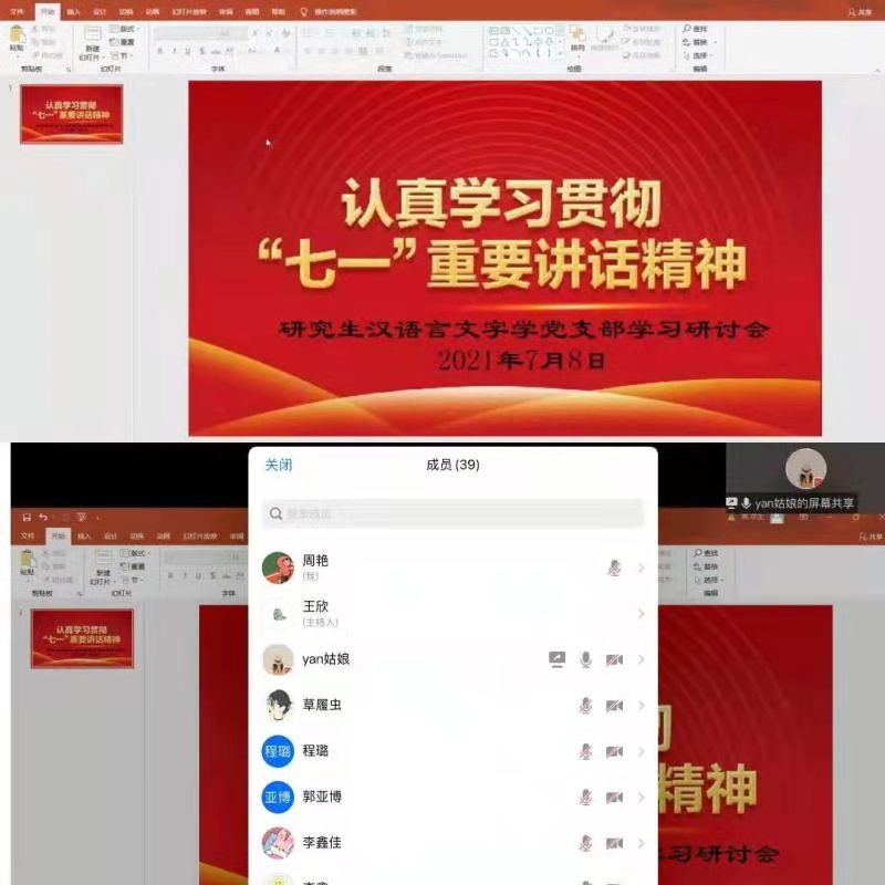 2021年7月8日下午,学院各党支部召开专题学习会,结合党史学习教育,重点学习研讨习近平总书记在庆祝中国共产党成立100周年大会上的重要讲话精神(简称“七一”讲话)。
