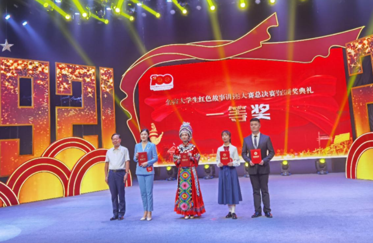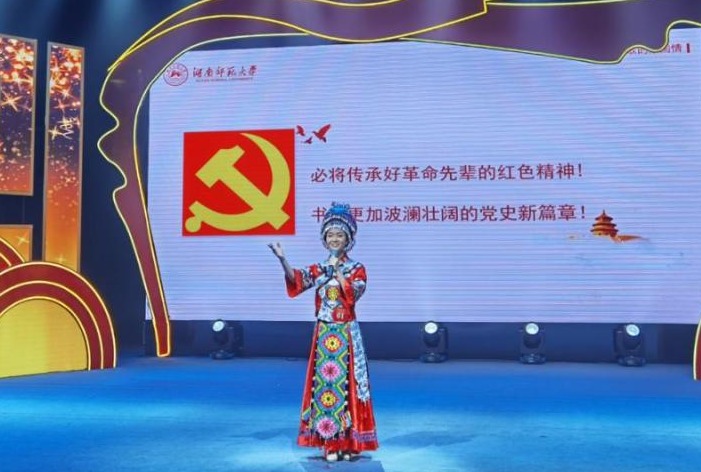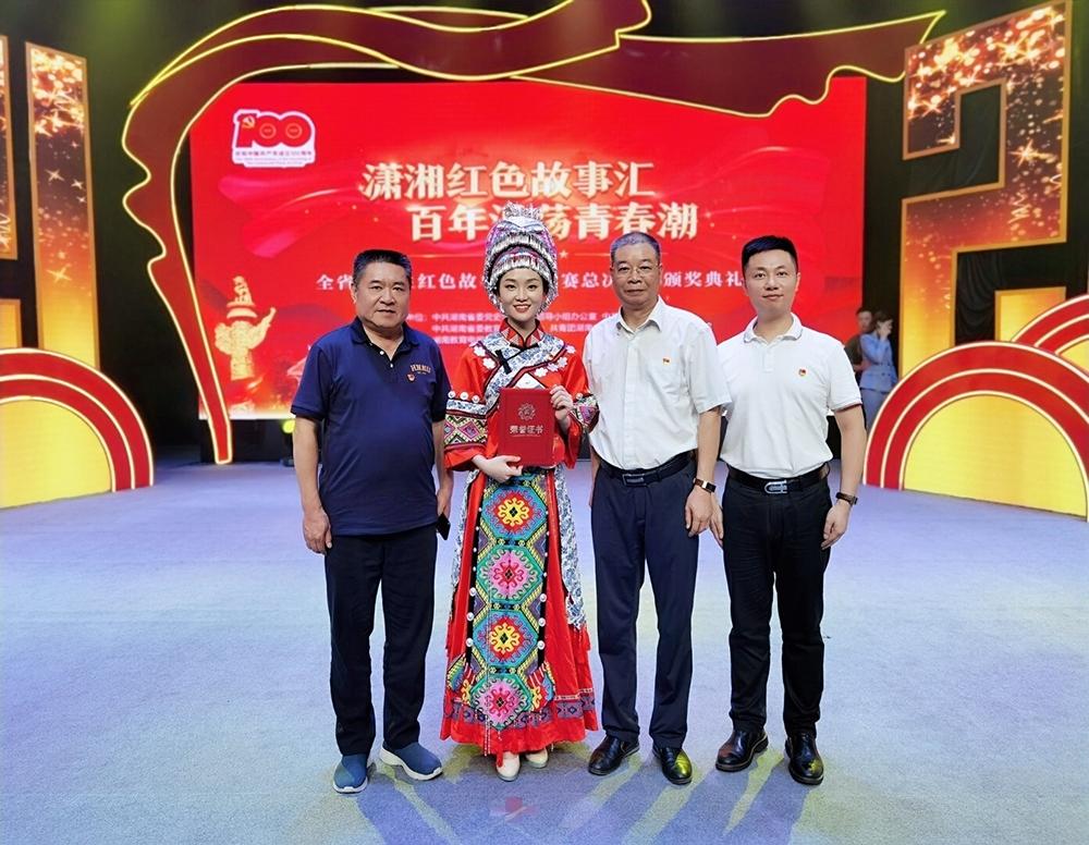 比赛现场,参赛选手们以湖湘革命先辈、开国将帅、英雄模范和在百年党史历程中具有重大影响的历史事件为基本素材,紧扣红色主题,从自身独特视角出发,讲述红色故事。我校英国上市官网365硕士研究生江静雪第一位出场,以《一首湘西民歌的家国情》为题,深情讲述了湘西土家民歌《马桑树儿搭灯台》背后集思想性、故事性、教育性于一体的红色故事,生动诠释了在百年党史中中国共产党员的初心使命与家国情怀,感动了在场所有评委与观众,最终荣获全省最高奖。