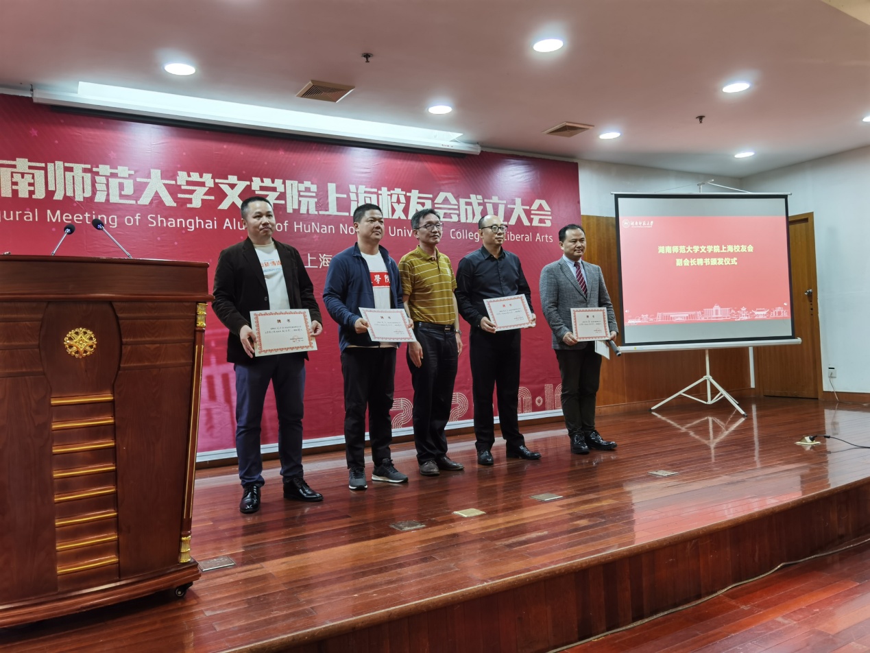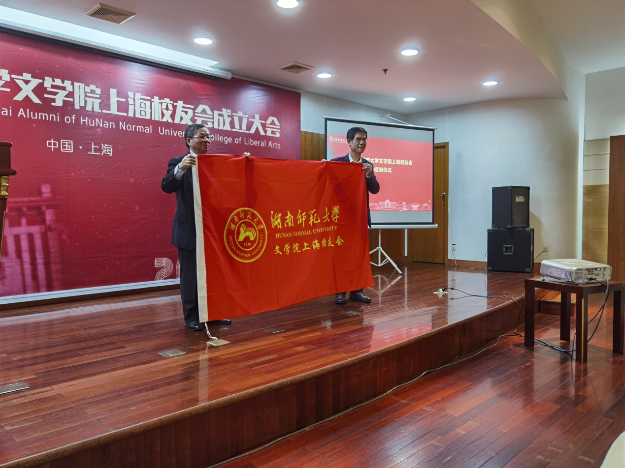 梁勇秘书长向黄力之会长授会旗,学校出席代表与上海校友会代表向英国上市官网365上海校友会理事成员颁发聘书。