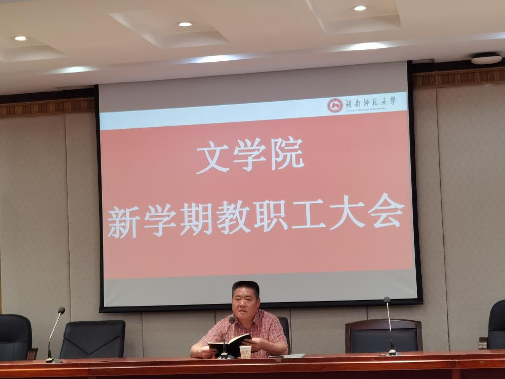 院长肖百容简单总结了上学期工作,认真传达了学校新学期工作会议上刘怀德副校长关于后勤工作报告和王辉副校长关于本科生招生就业报告的主要内容,重点传达了刘起军校长、蒋洪新书记讲话的重要精神,并就学院新学期的工作重点作了布置和安排。