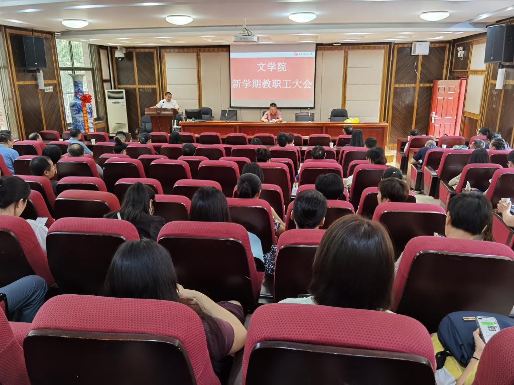 2022年8月28日上午9:30,学院在216报告厅召开新学期工作大会,全院教职工参加,会议由院党委书记李伶俐主持。