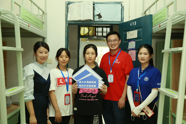 刘宓蜜对新生的到来表示欢迎,每到一间宿舍,她都详细询问新生报到情况,还认真查看了宿舍环境及内部设施。“你来自哪里?”“是不是第一次在学校住宿?”“来到这里适不适应?”“大学生活即将开始,有没有做好准备?”周紫阳则叮嘱新生认真做好规划,珍惜大学时光,在今后的学习中互帮互助,团结进取。对于学习生活中遇到的困难,要及时和辅导员、助理辅导员反映,辅导员及助理辅导员会积极帮助同学们解决问题。