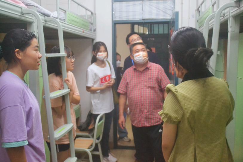 (通讯员 熊杨平安 田昊彤)为了解新生入学后基本情况,切实解决新生遇到的实际问题,加强师生交流,9月11日晚上,我院党委书记李伶俐,院长肖百容,副院长岳凯华、吕双伟、徐朝红、彭万福,党委副书记刘宓蜜在各年级辅导员与新生助理辅导员的陪同下前往我校德智园、南院宿舍区慰问新生。