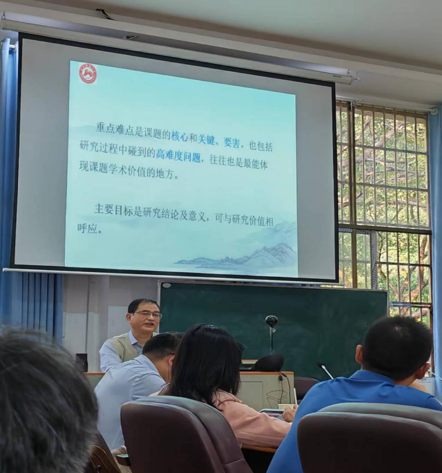 杨合林教授围绕“国家社科基金项目为什么如此重要”、“如何破解项目申报难题”、“如何写好项目申报书”等三大核心问题展开,有的放矢,分析精准,视野广阔,举例生动,让与会教师受益匪浅。杨合林教授首先界定了国家社科基金项目的重要性:科研项目尤其是国家社科基金项目是学校、学院、学科发展的战略资源和战略制高点,是科研工作的牛鼻子,也是个人成长的垫脚石。接着,他从经费来源、学术实力与学术话语权、成果产出、人才队伍建设、“双一流”建设的重要评价指标等五个方面详尽阐明了这一重要性。