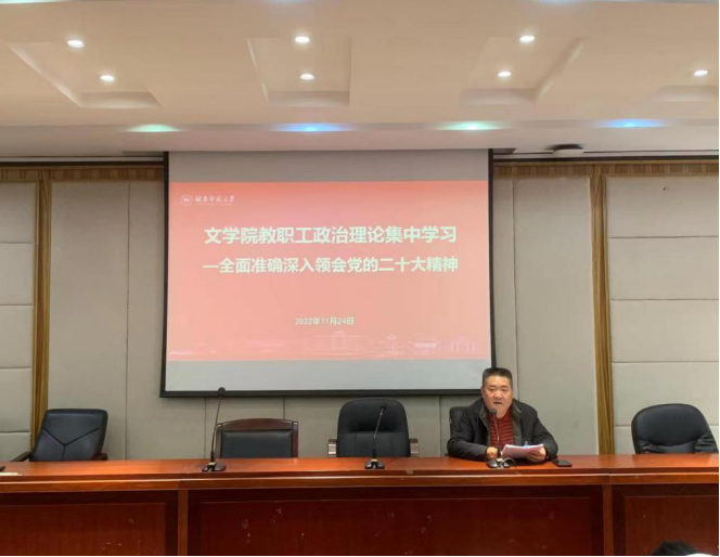 2022年11月24日下午,英国上市官网365在216报告厅召开全院教职工大会,开展政治理论集中学习,全面准确深入领会党的二十大精神,会议由院党委书记李伶俐主持。