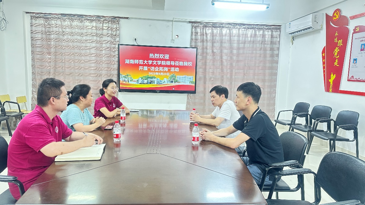 夏云飞和殷明老师与三所学校的领导老师分别开展了座谈和交流,夏云飞介绍了学院的历史沿革、学科特色、英国365及人才培养情况,说明了此行的目的一是看望老校友,二是响应学校访企拓岗的工作要求,希望贵校今后能更多地到师大特别是到英国上市官网365招聘相关学科的人才。