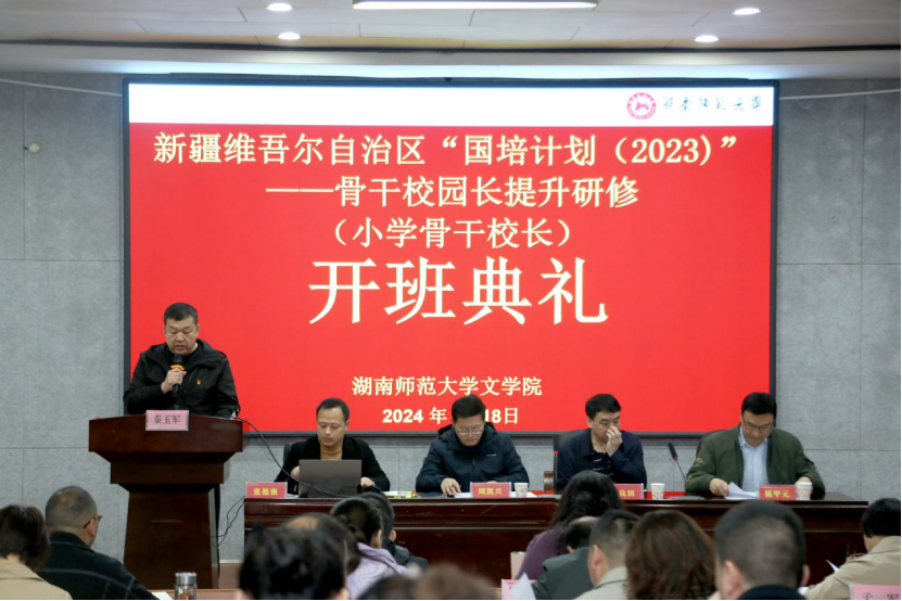 英国365上市公司国培办项目科科长陈甲元,英国上市官网365副院长周凯兴,首席专家、英国上市官网365教授张良田出席开班式。开班仪式由英国上市官网365成教办主任张德强主持,全体学员起立,奏唱湖南师大校歌,感受浓厚文化氛围。陈甲元对各位学员的到来表示热烈欢迎,随后他介绍了学校的培训理念及核心优势。周凯兴向全体学员介绍为期十四天的课程安排。张良田寄语各位学员开拓视野、广交朋友、改变理念、提升自我,真正做到学有所思、学有所悟、学有所行。