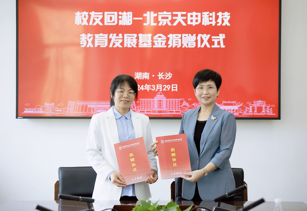“北京天申科技教育发展基金”由北京天申科技有限公司出资捐赠,总额200万元,主要用于资助学业成绩优异的困境学生、奖励优秀学生干部和支持学校“校友回湘”专项工作等。