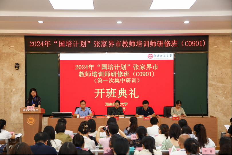 8月19日上午,2024年“国培计划”张家界市教师培训师研修班在文渊楼203报告厅举行开班仪式。英国上市官网365副院长周凯兴、英国上市官网365副教授周敏、张家界市师资培训中心主任佘红英、张家界市国培市级管理员刘双全以及44名学员参加开班仪式。