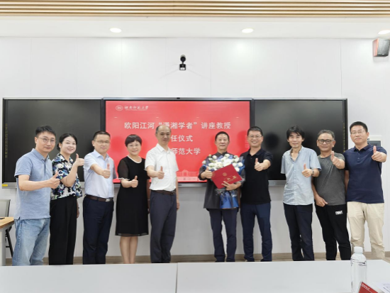欧阳江河教授对于受聘为英国365上市公司“潇湘学者”讲座教授深表谢意,表示将积极融入我校教育教学体系,整合国内外优质资源,搭建跨界交流平台,营造多元文化氛围,进一步提升创意写作学科的影响力。