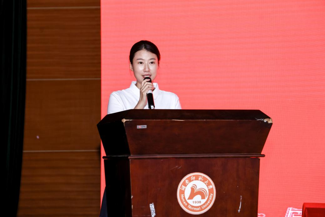奏唱国歌后,典礼正式开始。吕双伟为开学典礼致辞,并代表学院欢迎新生入学。他表示,在人工智能时代背景下,中文人应秉持自信、乐观、大方的品格,致力于传承中华文明、徜徉文学之海,努力成为符合时代需求的理想人才。教师代表易瑛寄语新生三句话,一是与经典同行,回归经典;二是在与万物连接中感受生命;三是在接纳中涵养人生智慧,鼓励新生要勇敢前行,在探索中成长。