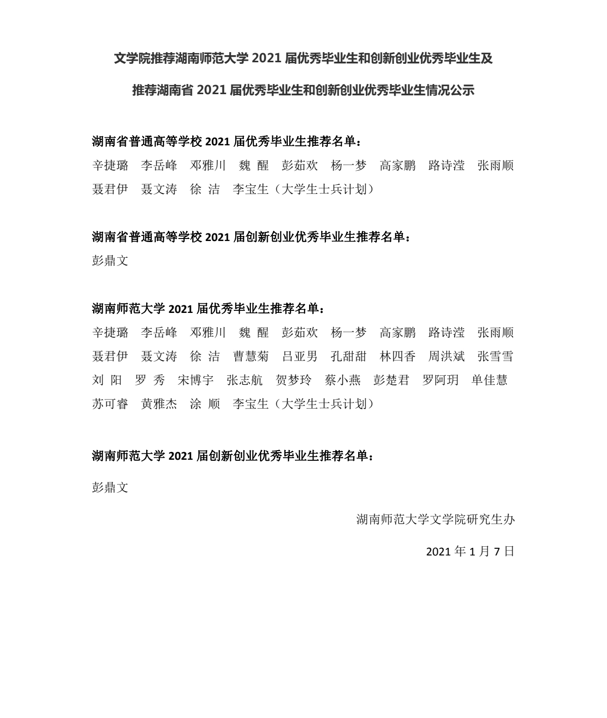 英国上市官网365推荐2021届优秀毕业生和创新创业优秀毕业生情况公示