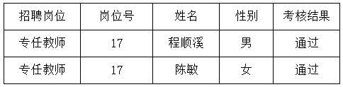 根据《英国365上市公司2024年专任教师第一批公开招聘公告》,经报名、资格审查和考核程序,现将考核结果予以公布,如对考核结果有异议,请于2024年12月17日18:00前与陈雅琪老师联系(联系电话:0731-88872505)。