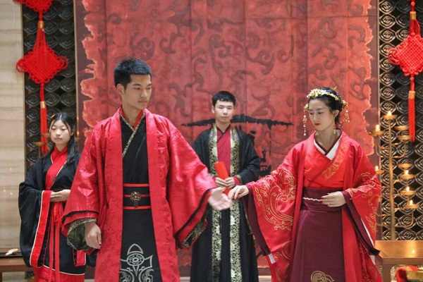 (通讯员 李欣桐 朱文杰 潘越)5月20日下午,由我院汉韵学社及长沙学院明源国学社共同策划的汉式婚礼在大汉汉园举办。