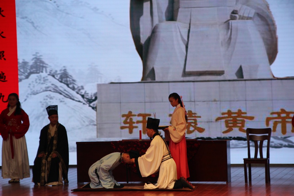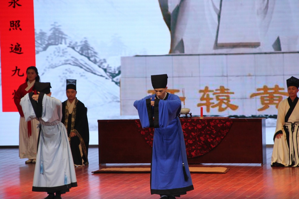 随着司仪的一声“开礼”,由汉韵学社成员担任的数名执事提灯捧香,缓缓上台。附中两名高三学生代表身着汉服,登堂入室,在司仪的主持下,正宾为二人戴上代表成人的儒巾并命字。脱下孺子服装,换上成人装束,象征着未成年到成年的角色转换。冠者拜谢尊长及师长,并和在场的高三学生共同聆听师长“立成栋梁,自信自强”的训示。学生们认真观礼,不时报以热烈的掌声,整个成人礼持续近半小时。