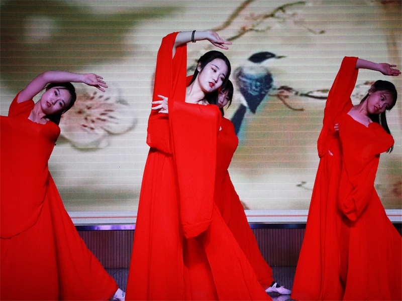 开场舞《越人歌》拉开大赛帷幕,将观众带入诗歌独有的世界。百诗千酌始登堂。各班将表演与诗歌融合,相得益彰,尽显诗歌韵味,形式各异,各有千秋。2015级中文四班《铜雀伎之鼓舞永别》将舞伎郑飞蓬与鼓手维斯奴生死相隔的痛苦演绎的淋漓尽致;2016级文秘班舞蹈《山鬼》,舞姿优美,舞出窥探到神女的美貌而又求之不得的惆怅;“如果能重来,我要做李白”,2017级中文三班带来小品《我要做李白》,令人耳目一新,幽默诙谐而又不失内涵,赢得全场欢笑,掌声阵阵;2017级基地班《诗经风韵》将诗经中的人生百态浓缩,梦回经典,一睹诗经风韵。