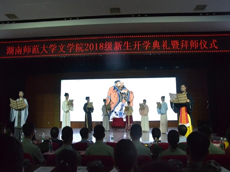 (通讯员 刘阳)9月10日下午,我院在励德楼学生活动中心举办2018级新生开学典礼暨拜师仪式。莅临此次活动的嘉宾有我校纪委书记唐贤清、我院院长郑贤章、党委书记李伶俐、党委副书记熊剑峰、副院长肖百容、岳凯华、对外汉语系主任陈晖、2018级新生班导师张良田、研究生各学位点负责人等。我院学工办主任周灿主持此次活动。