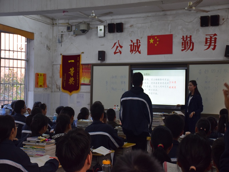 本次公开课内容为《奇妙的对联》。课堂以还珠格格对联视频导入,立足常识,高在心用对联口诀详细地讲解对联规则。并采用竞赛抢答的形式调动学生参与课堂。课堂上同学们积极参与,踊跃举手,气氛轻松、活跃。