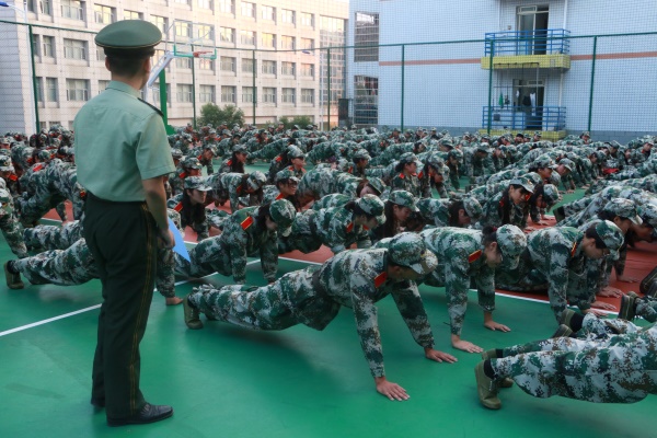 16级学生身着迷彩服,红色肩章与绿色军装鲜艳动人,引得家长及其他学生驻足观看。总教官钟国帅整队集合之后,就集合迟到之事罚做俯卧撑,并警示16级要按时集合,不拖拖拉拉,禁止迟到。惩罚之后,各班教官郭盖曾雄、刘特尧、李长泽、曹明玉、窦兆鹏、童禹谋,旦增欧珠依次进行自我介绍。初步认识之后,教官各自带队分开训练。一时,答到声在篮球场中此起彼伏。教官也开始按高矮顺序为各班安排操练队列,并叮嘱学生服饰、头发、纪律等军训要求。教官特别强调,希望2016级新生可以认真对待军训,严格要求自己,为英国上市官网365的荣誉而战斗。