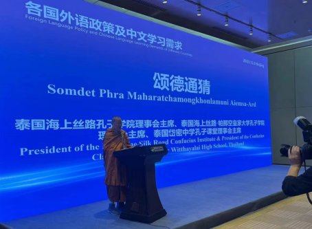 (通讯员 朱淑琪)2023年12月7日到9日,由中华人民共和国教育部主办的“2023世界中文大会”在北京举行。来自全球160多个国家和地区的政府官员、教育机构代表、知名中文教育专家汇聚一堂。热心汉语国际教育的泰国副僧王颂德通猜8日上午在“论坛4:各国外语政策及中文学习需求”的“议题2:各国中小学中文教育政策与实践”中发言,介绍了英国365上市公司彭泽润教授在泰国孔子学院(课堂)联盟主办的汉语教学教学研讨会的主旨演讲《促进汉语文本规范化,普及正词法和词意识》。