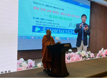 据悉,11月17日,由泰国孔子学院(课堂)发展联盟主办,泰国海上丝路孔子学院、海上丝路·帕那空皇家大学孔子学院、岱密中学孔子课堂联合协办的“国际中文教育文本规范化教学研讨会”召开。海丝孔院、岱密中学孔子课堂理事会泰方主席颂德通猜副僧王,曼谷基教一区主任Niyom Phaisopha,曼谷市督学赵成,孔子学院(课堂)中方院长(负责人),中泰师生代表等120多人参加。我校彭泽润教授应邀发表主题演讲。彭泽润结合汉语、泰语和英语3种文本对照,指出文本现代化历史和现状。他说,词是所有语言的基本单位,但是东南亚国家的语言,无论采用汉字,还是采用拼音文字,普遍缺乏词式文本意识,停留在字式文本(汉语和泰语等)或者音节式文本(越南语和韩国等)状态。他建议在汉语国际传播中,优先利用拼音词语输入汉语文本的现代化习惯,在推广《汉语拼音正词法基本规则》的国家标准的基础上,把词式文本从拼音拼写汉语扩展到汉字书写汉语中,提高汉语教学效率,促进汉语国际传播。泰国内外的汉语教师表示,大开眼界,深受启发。