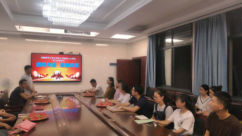 18日晚七点,师大英国上市官网365实习队与三立学校在教学楼5楼会议室举行实习启动仪式。贺校长、曹书记、朱校长与各位实习老师出席会议,会议由朱校长主持。贺校长代表三立学校表达了对实习队伍的热烈欢迎,曹书记在讲话中对实习的具体内容作了精心周密的安排,双方就实习细节进行讨论并达成一致认同。