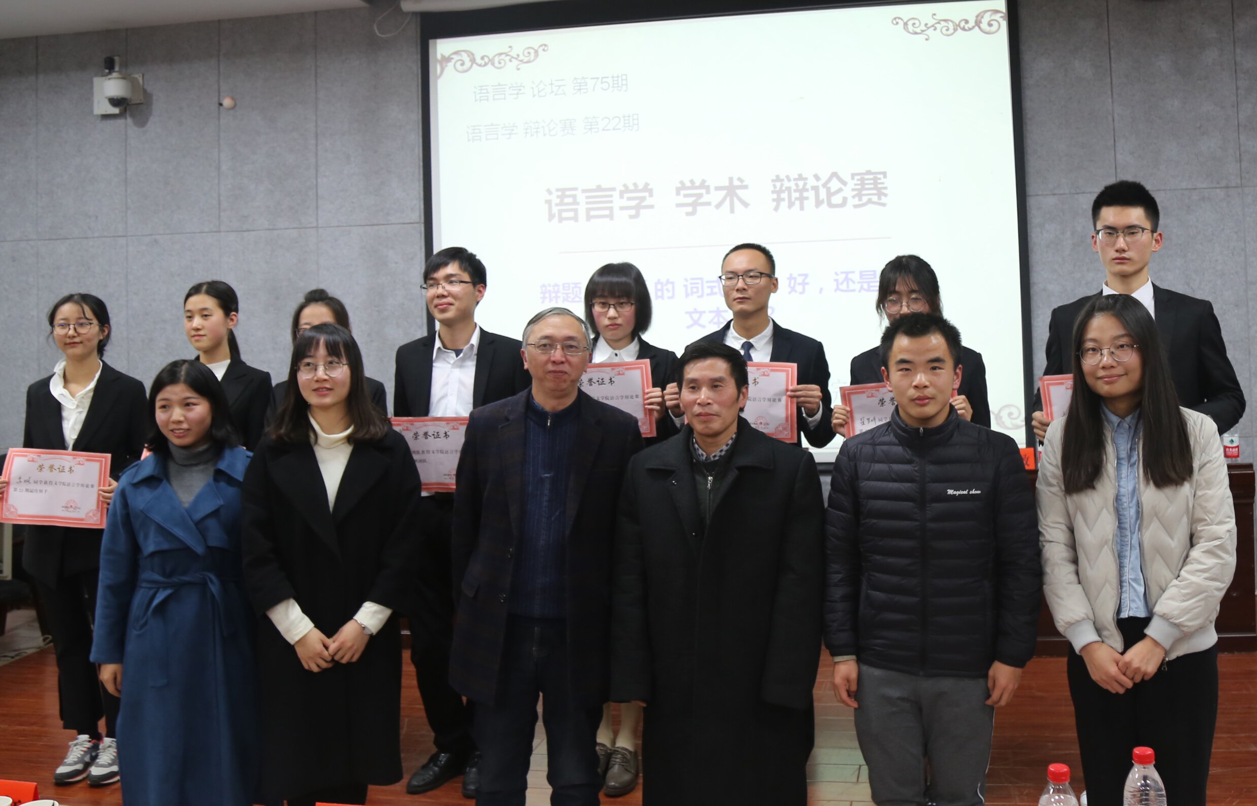 (通讯员王雪纯,柯秀清,何俊仪)2017年11月21日晚,英国上市官网365第22期语言学辩论赛在217教室举行,现场座无虚席,气氛热烈。博士生导师彭泽润教授、曾常红副教授、博士生雷梓燚等出席并担任评委。