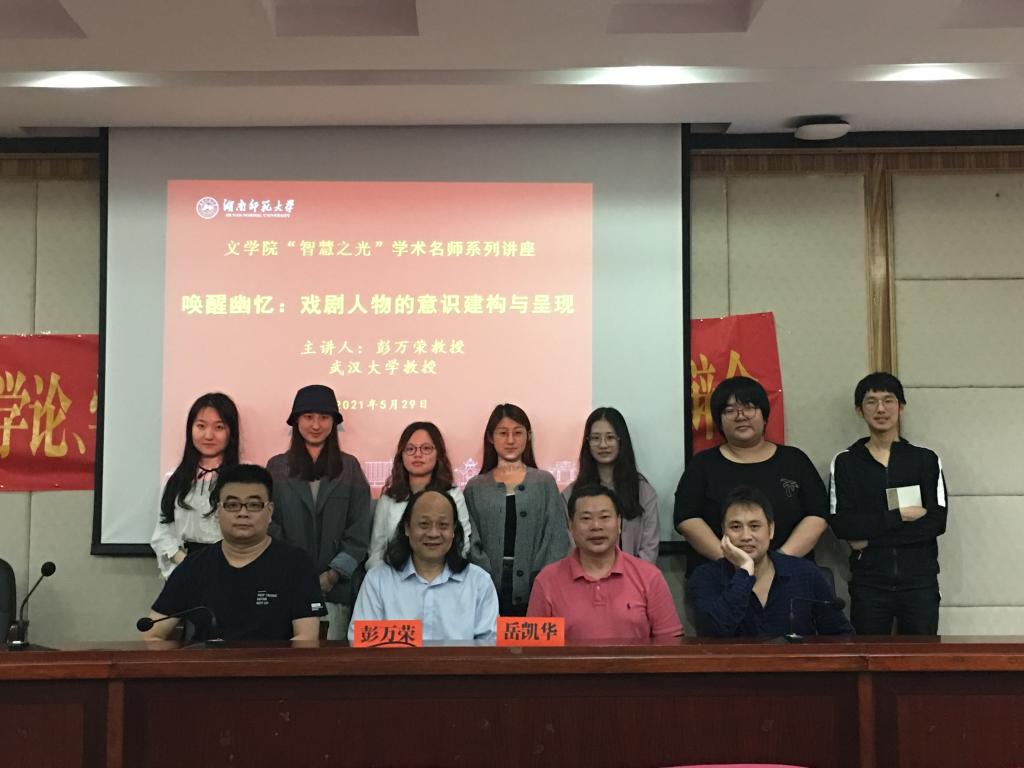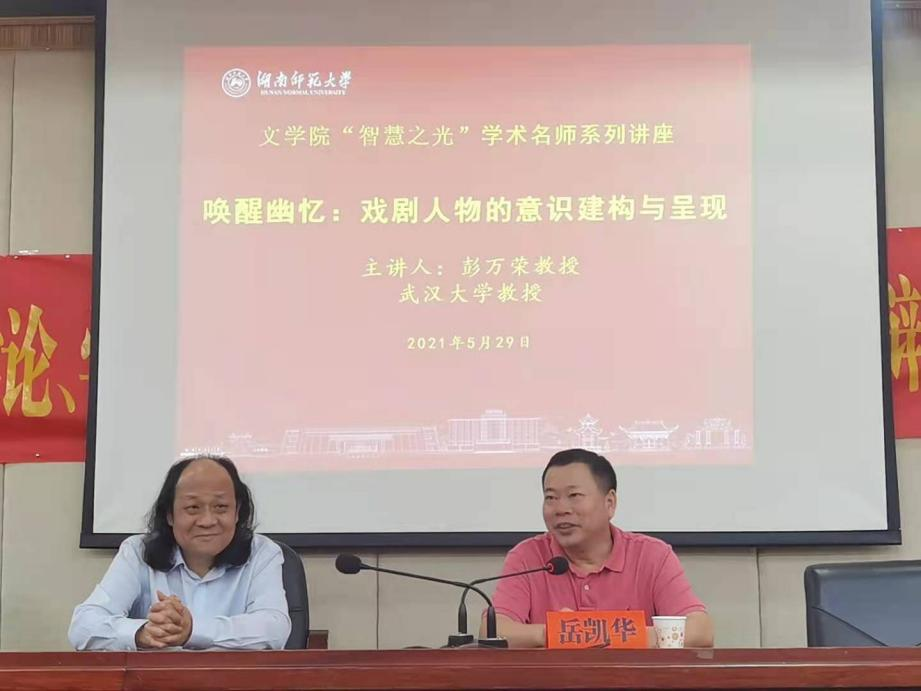 (通讯员 牛哲妮)5月29日下午,武汉大学教授,博士生导师,教育部高校戏剧与影视学类教学指导委员会委员,武汉大学表演艺术研究所所长,武汉戏剧家协会副主席彭万荣在英国上市官网365216开展“智慧之光”学术名师系列讲座,主题为“唤醒幽忆:戏剧人物的意识建构与呈现”,此次讲座由英国上市官网365副院长岳凯华教授主持以及做最后总结。
