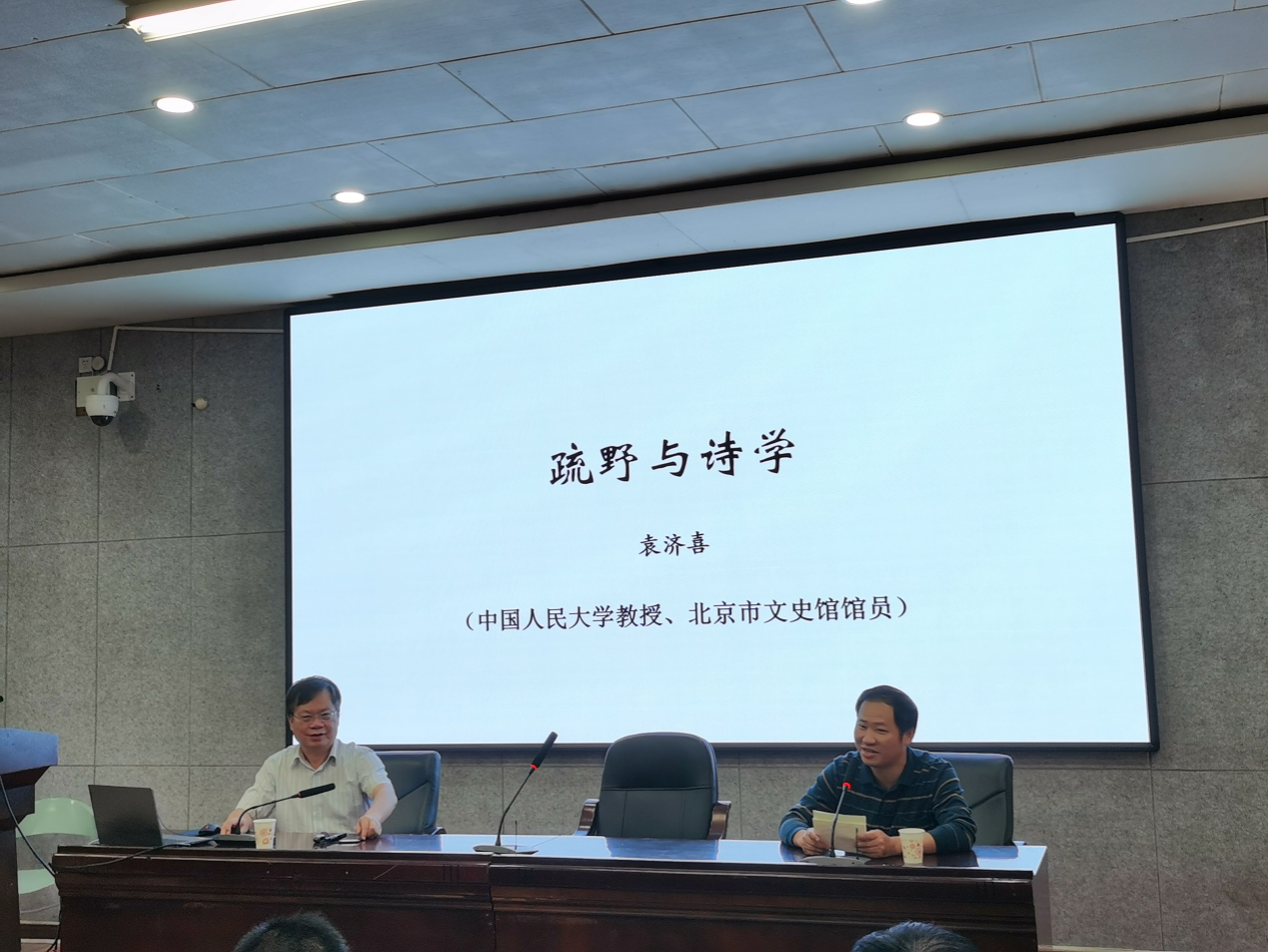 (通讯员方平)9月23日下午三点,中国人民大学杰出学者特聘教授袁济喜老师莅临英国上市官网365,在217教室作了题为“疏野与诗学”的精彩讲座。这是英国上市官网365“智慧之光”学术名师系列讲座中的又一次学术思想盛宴。本次讲座由汤凌云教授主持,中南大学毛宣国教授,本院周泽东副教授、文浩副教授、牟方磊老师等多名教师和硕博士生参加。
