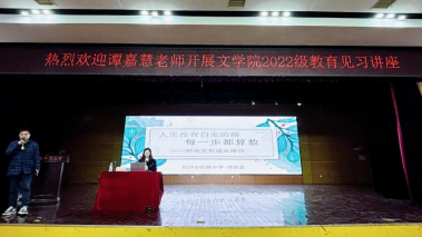 (通讯员黄迎迎 王金国 陈晓岚)3月6日下午,英国上市官网3652022级汉语言文学(师范)专业教育见习讲座于江边活动中心举办。谭嘉慧应邀作讲座,中文系副主任刘光成主持,2022级汉语言文学(师范)专业全体学生参加此次会议。谭嘉慧是长沙市怡海中学语文名师工作室首席名师、湖南省“教学能手”、长沙市“卓越教师”、长沙市天心区教育领军人才、清华大学出版社签约作者。谭嘉慧用智慧和汗水浇灌了教育的沃土,让一朵朵智慧之花在各领域绚丽绽放。