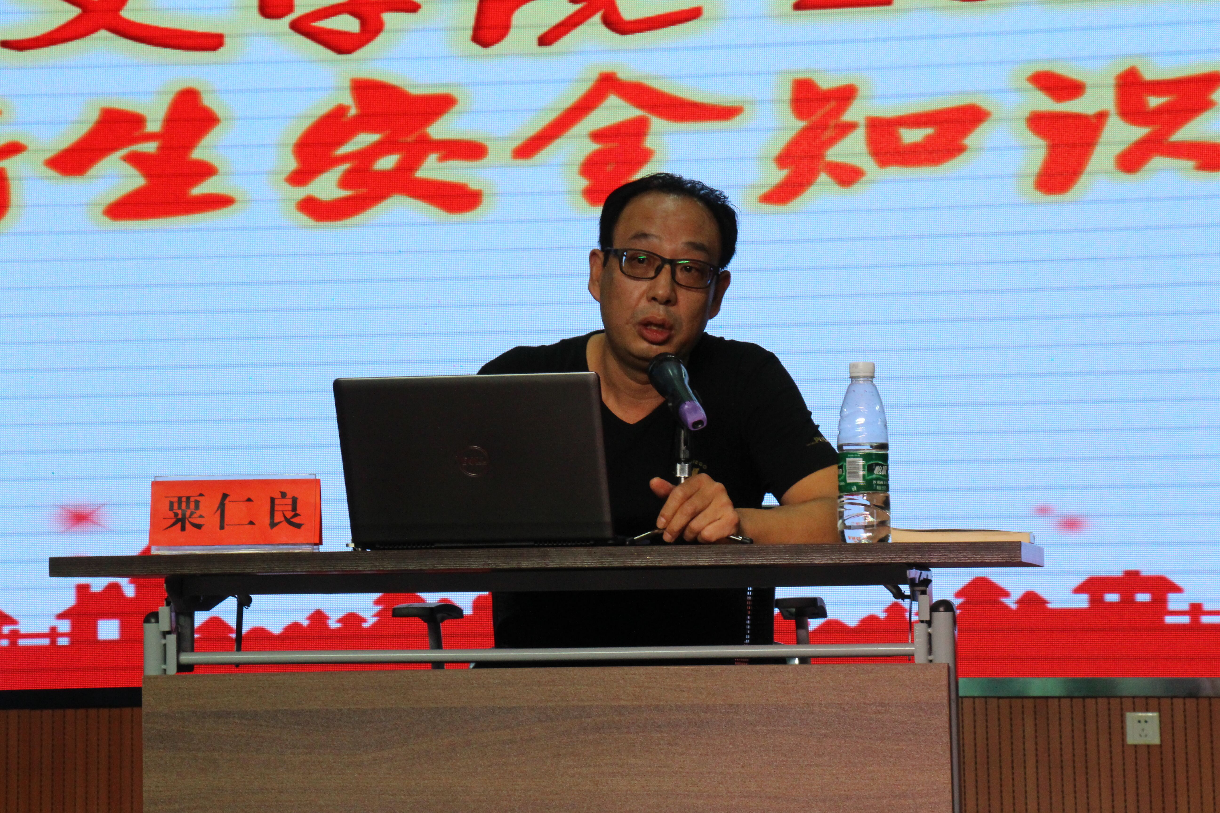 (通讯员 曹文毓 吴凡)9月17日中午,我院2017年新生安全知识讲座在江边活动中心举行。我校保卫处副处长粟仁良担任主讲,熊剑峰副书记担任主持,2017级全体新生到场参与。